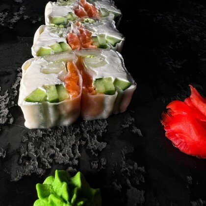 Рисовая бумага, сыр сливочный, креветка , айсберг, огурец