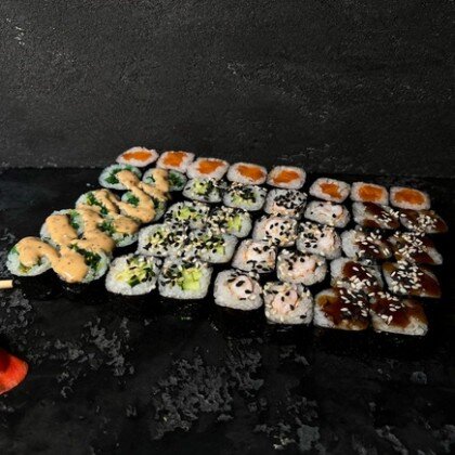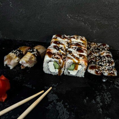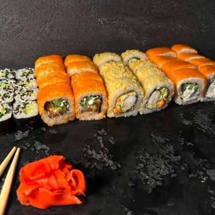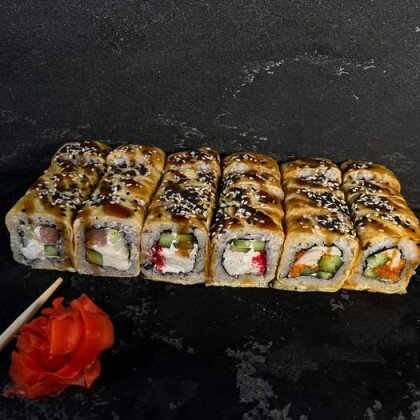 «Зебра с курицей», «Помпей» В состав входит: Соевый соус 120 мл-1шт Имбирь 25гр-1шт Васаби 12гр-1шт