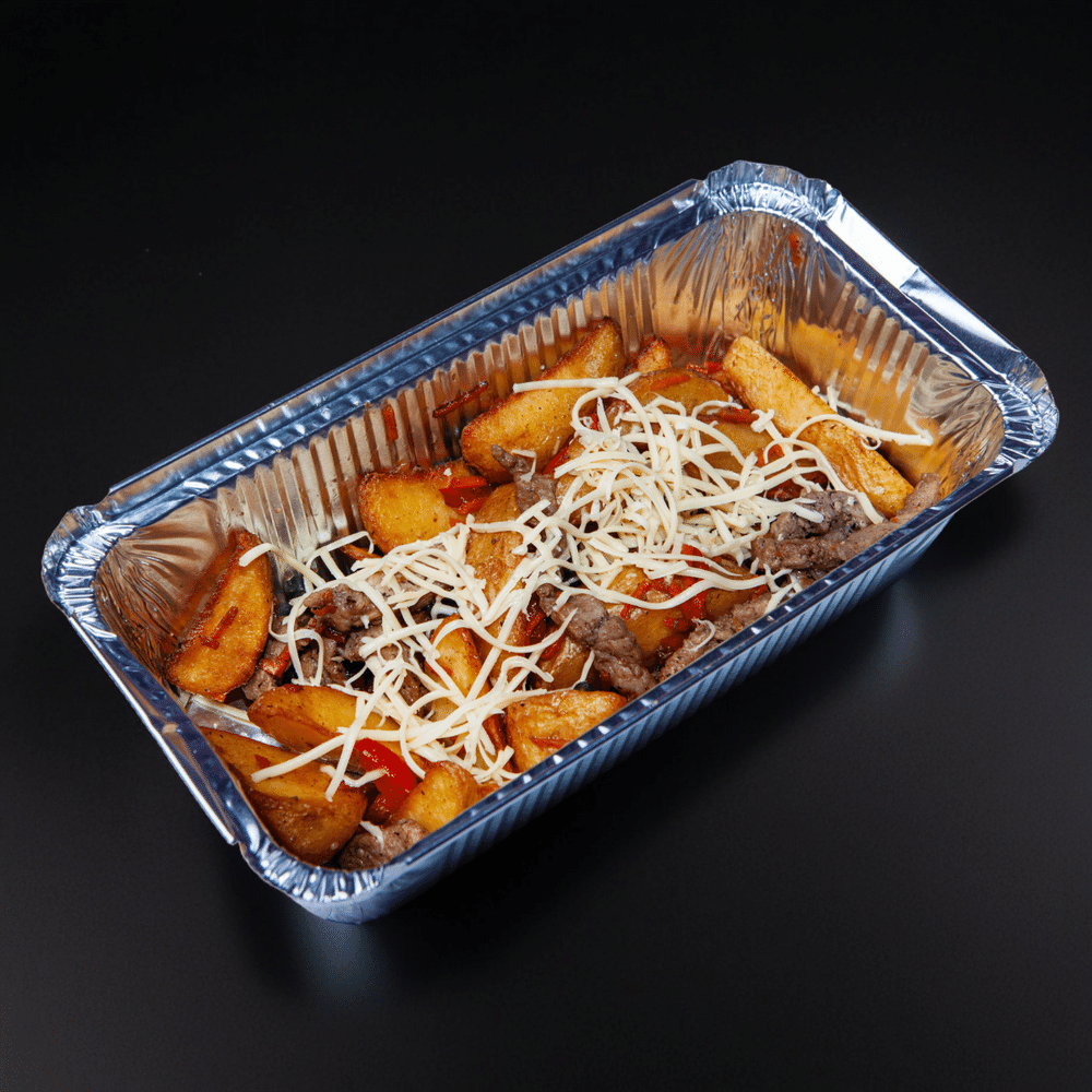 Свинина, картошка, пармезан, фасоль, морковь, болгарский перец, гауда