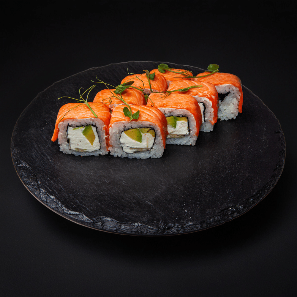 Нори, рис, сыр сливочный, миндаль, авокадо, лосось с/с, соус свит чили