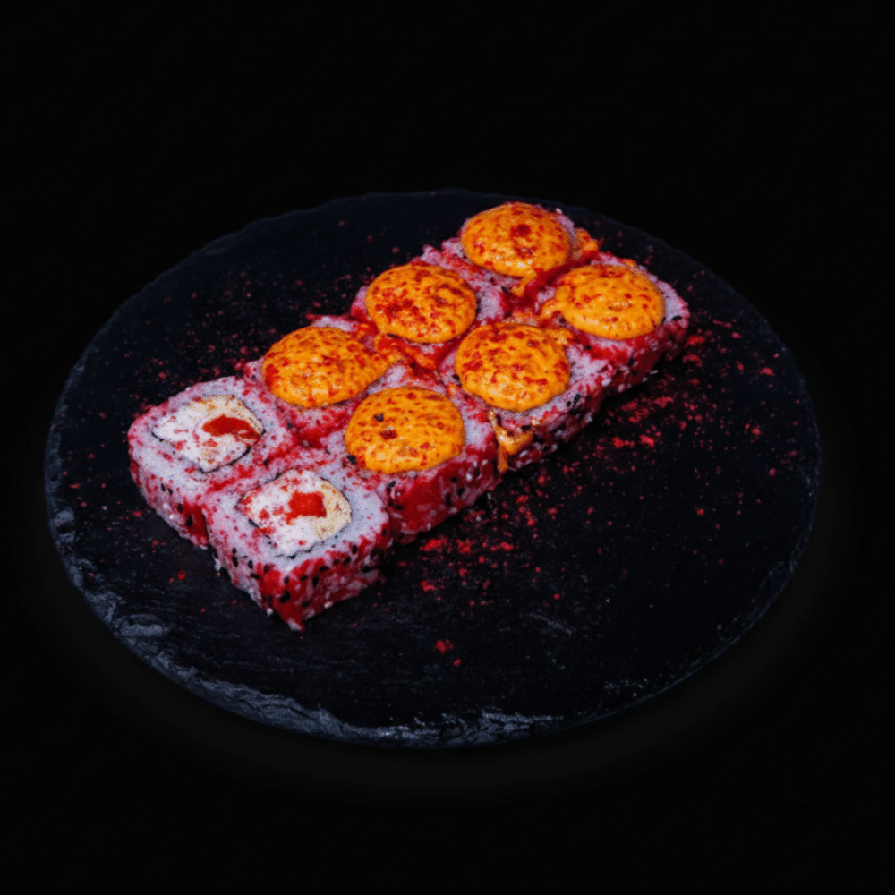 Тунец, рис, нори, икра масаги, снежный краб, кунжут, болгарский перец, соус спайси,паприка
